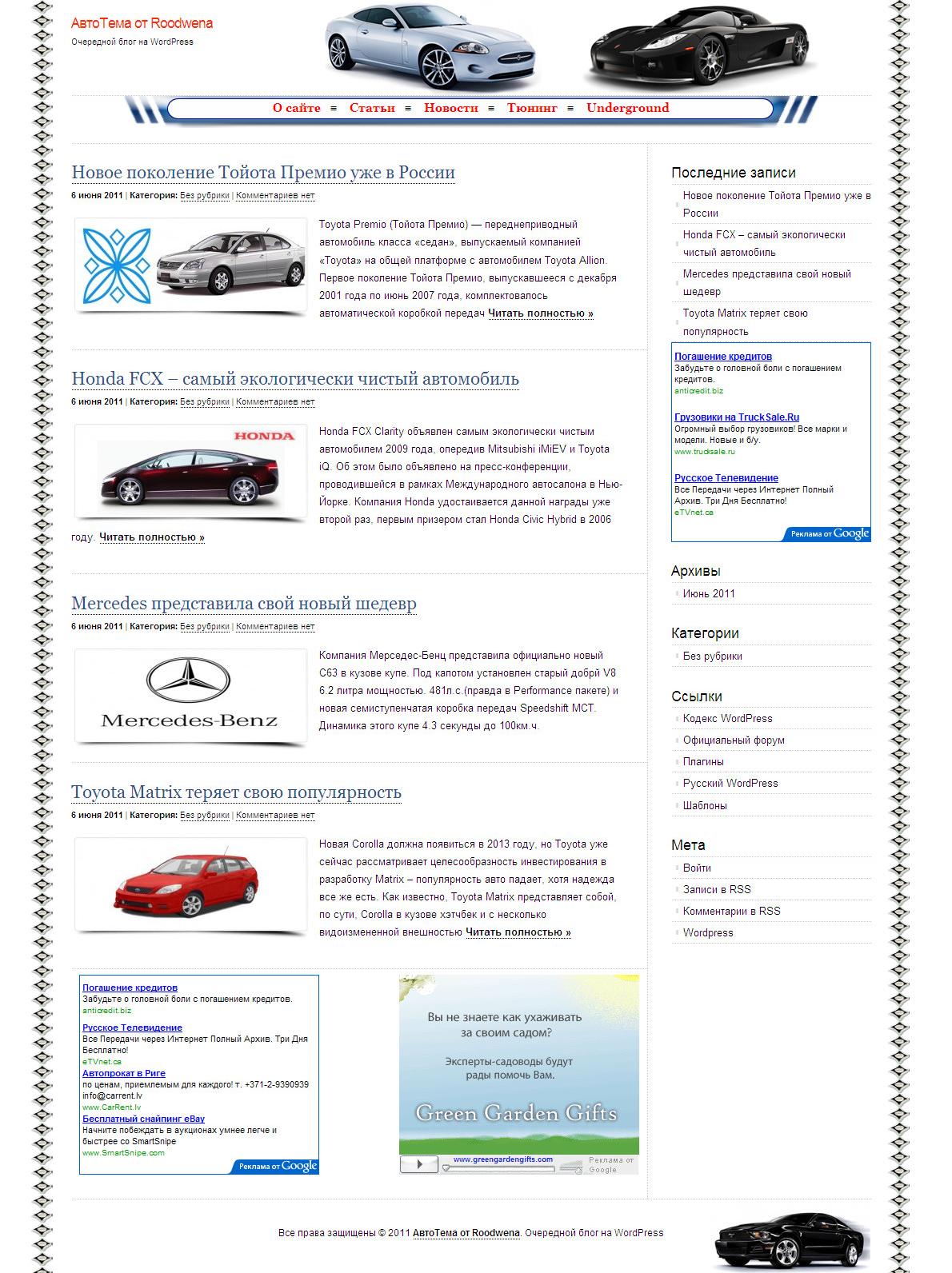 Красивая но в тоже время простая и хорошо читабельная тема для блога автомобильной тематики на Wordpress.