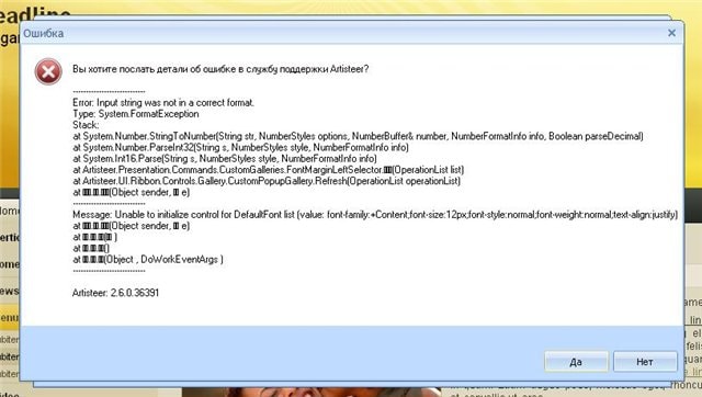 Подскажите кто пользуется Artisteer. Скачал, установил но при запуске вылазит ошибка. Использую Демо. Пробовал уже 3 разных версии программы везде эта ошибка. Там тех. поддержка только на английском вроде бы.