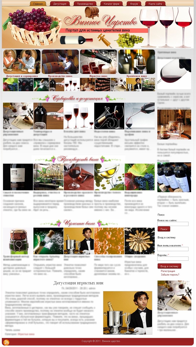 Выставляю на торги симпатичный сайтик, посвященный винам. Движок - Drupal 6.0. На сайте описаны некоторые аспекты дегустации и сервировки вин, описаны многие сорта и разновидности, дана справочная информация. Сайт нигде не размещен, продаются одни файлы.