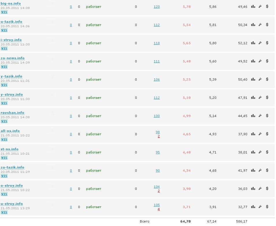 Доход 65руб/с в sape, доход растет с каждым днем, продано 10-15% всех ссылок, так что теоретически доход может возрасти до 10 раз. Так же сетку можно добавить в линкфид и маинлинк