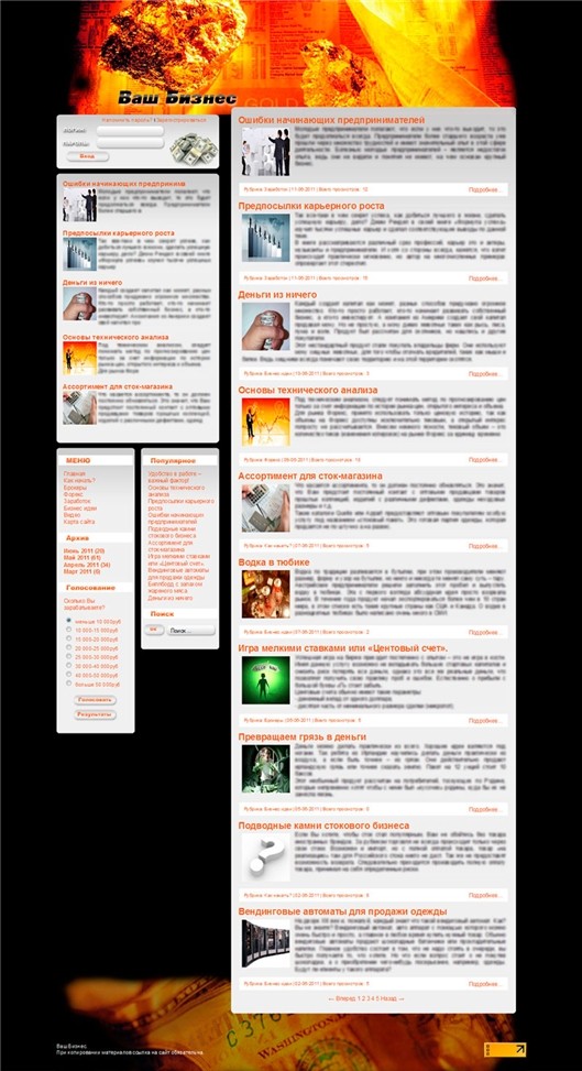 Предусмотрены блоки под вывод биржевых ссылок и контекстной рекламы.