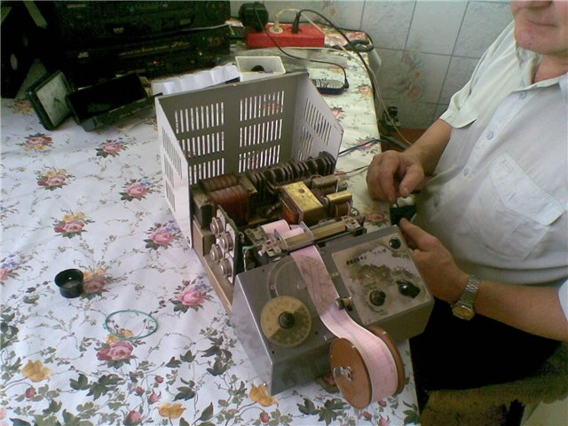 Там на нем ручками выставляется период, то есть - частота тиков, которая должна быть на данных часах. Вещь-то советская, тогда все часы были стандартны, и периодов было всего, грубо говоря, три. Ну а на миллиметровке видно, идут ли они правильно, или спешат/отстают. Вот на первой заметно, что там как-то линии немного пошли от края к центру ленты, и он забеспокоилсо.
