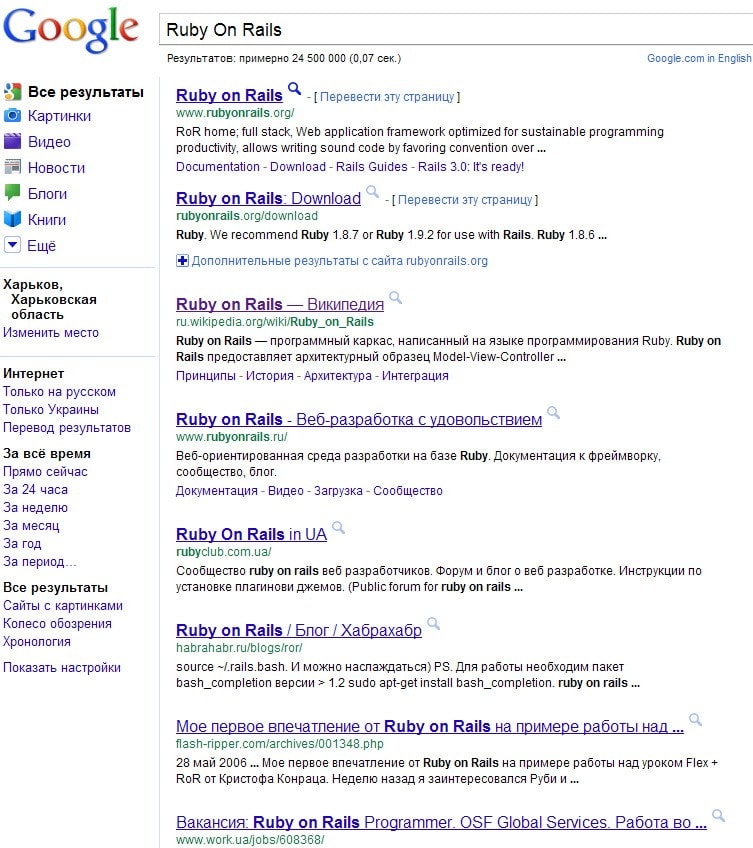 Выдача стала чуть растянутой, адреса страниц переместились под тайтл и пока нет ссылок "Сохраненная копия" и "Похожие"