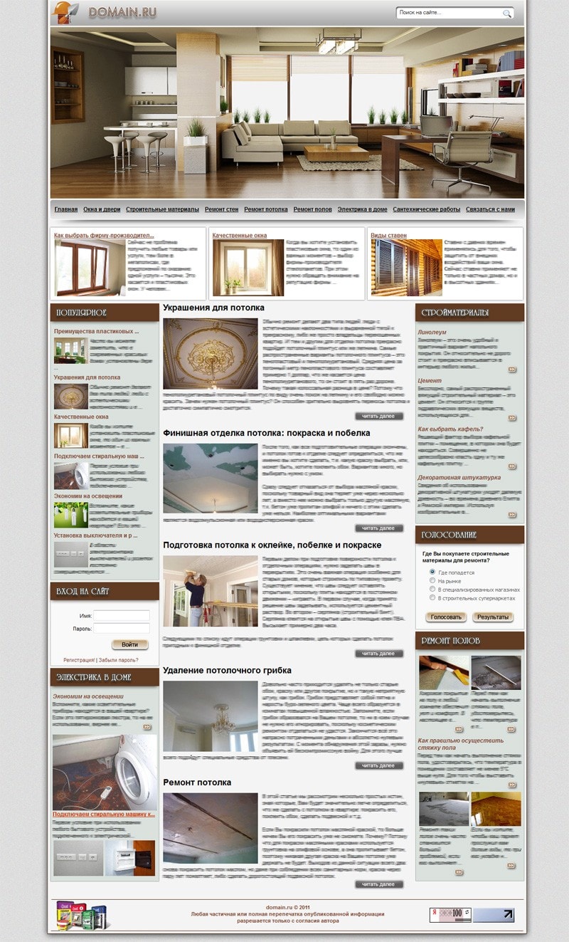 - Блок "Стройматериалы" выводит автоматически последние анонсы статей из раздела стройматериалы.