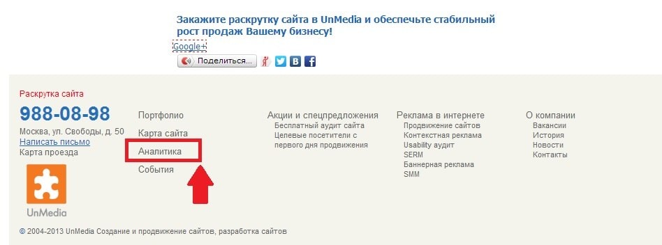 ссылка на "аналитику" в футере