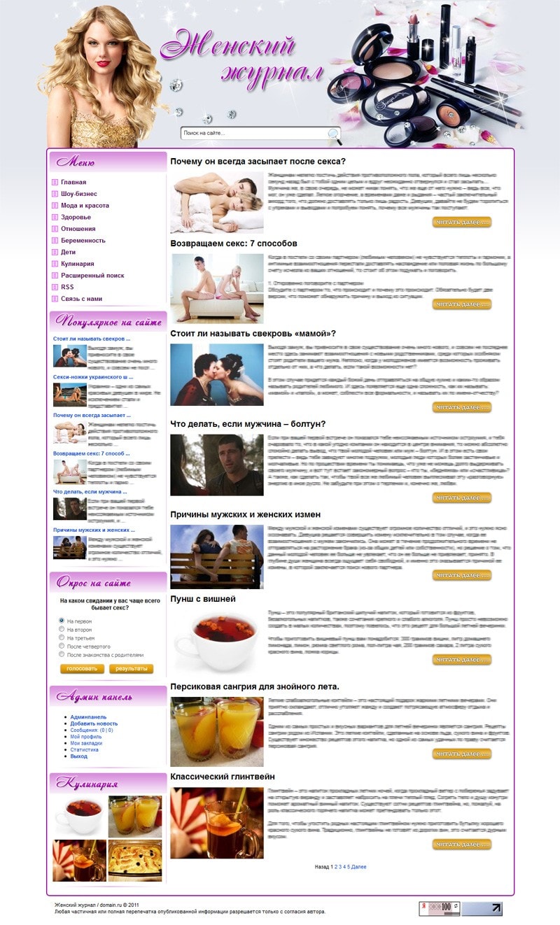 - Блок "Шоу-бизнес" выводит автоматически анонсы последних статей из раздела шоу-бизнес.