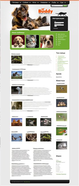 Дизайн: красивый дизайн, все блоки новостей выводятся с базы данных, картинки заполняются через дополнительные поля дле, каждый блок имеет отдельный шаблон.