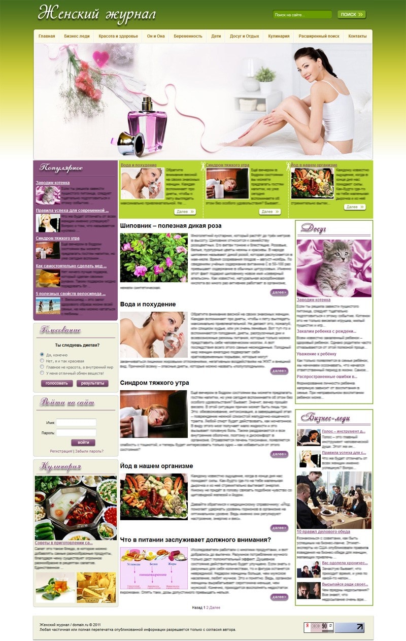 - Блок "Бизнес леди" выводит автоматически анонсы последних статей из раздела бизнес леди.