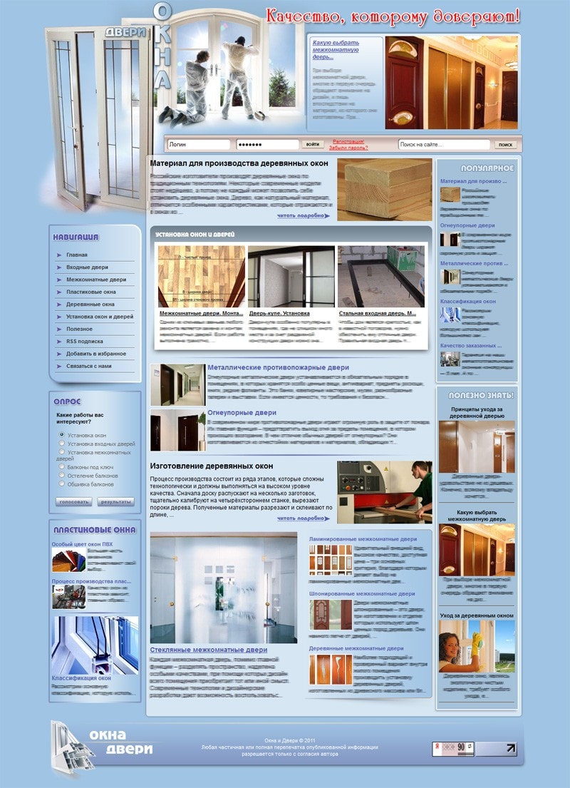 - Блок "Установка окон и дверей" выводит автоматически анонсы последних статей из раздела установка окон и дверей.
