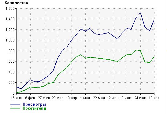 Посещаемость с поисковиков (в основном с яндекса) 600-800. Статистика открыта