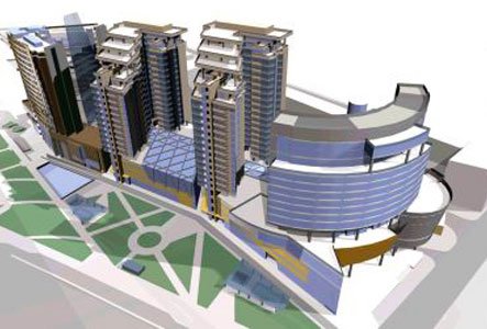 Комплекс – это четыре высотных, примерно 30-этажных здания, соединенных стеклянной галереей, он будет включать отель, деловой и культурно-развлекательный центры, кафе, ресторан, магазины и 3-уровневую подземную парковку на 950 машиномест.