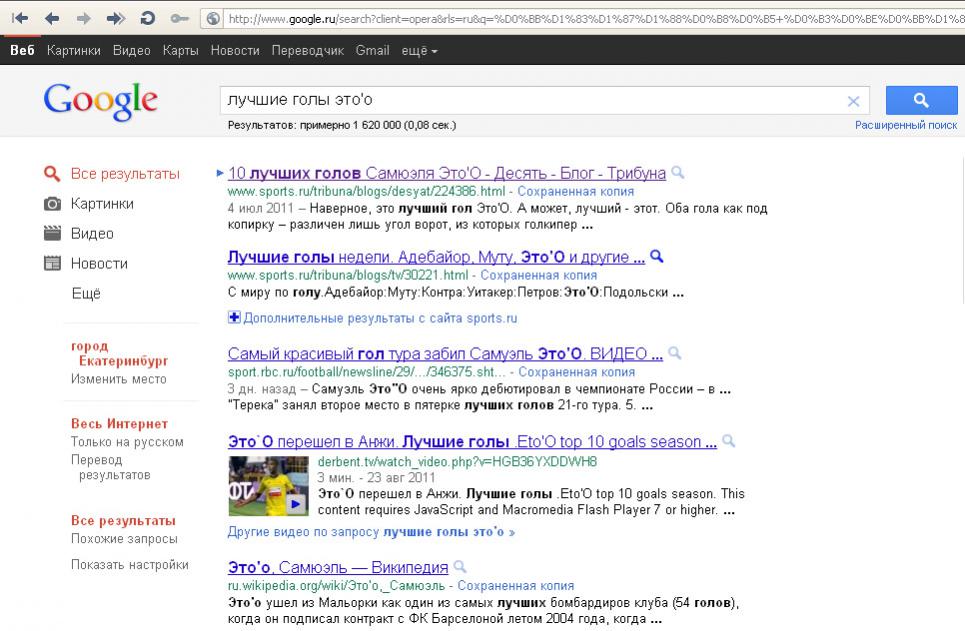 если я видел тему на спортивном сайте "лучшие голы Это'о"