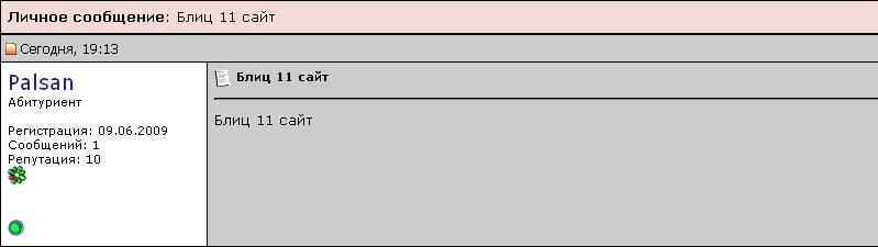 Получен блиц на сайт № 11 от пользователя Palsan: