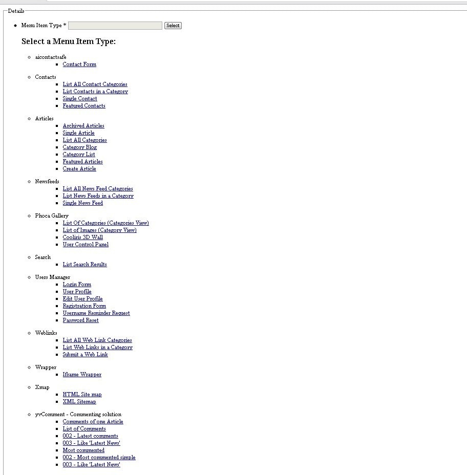 Собственно проблема такая - после апдейта до 1.7 словил баг - при создании нового пункта меню открывается страница со слетевшими стилями с выбором типа создаваемого меню, но при выборе ничего не нажимается, переход на другую страницу не осуществляется.