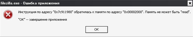 Добрый день,прошу помощи,при соединении с фтп сервером в FileZilla,программа закрываеться автоматически и выскакивает вот-такая ошибка.