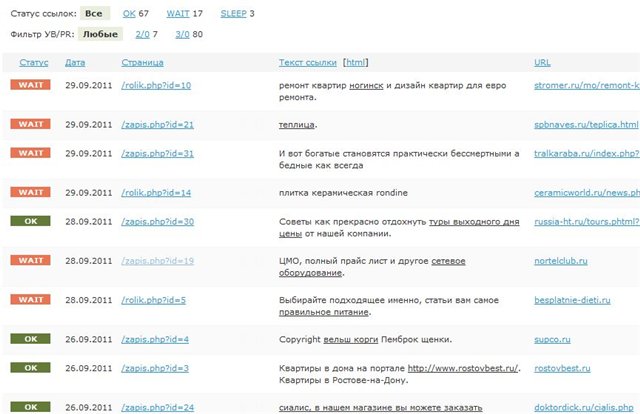 В каждый ап заходят новые страницы) Мои 22 сайта пока зарабатывают 87 рублей в sape, т.е. сайты окупаются уже меньше чем за месяц(один домен - 90 рублей, 22 домена - 1980р + хостинг 150 рублей в месяц = 2130. А сайты зарабатывают уже 2610 wmr в месяц :). И каждый день прибыль увеличивается на 1-2 рубля!!!!)