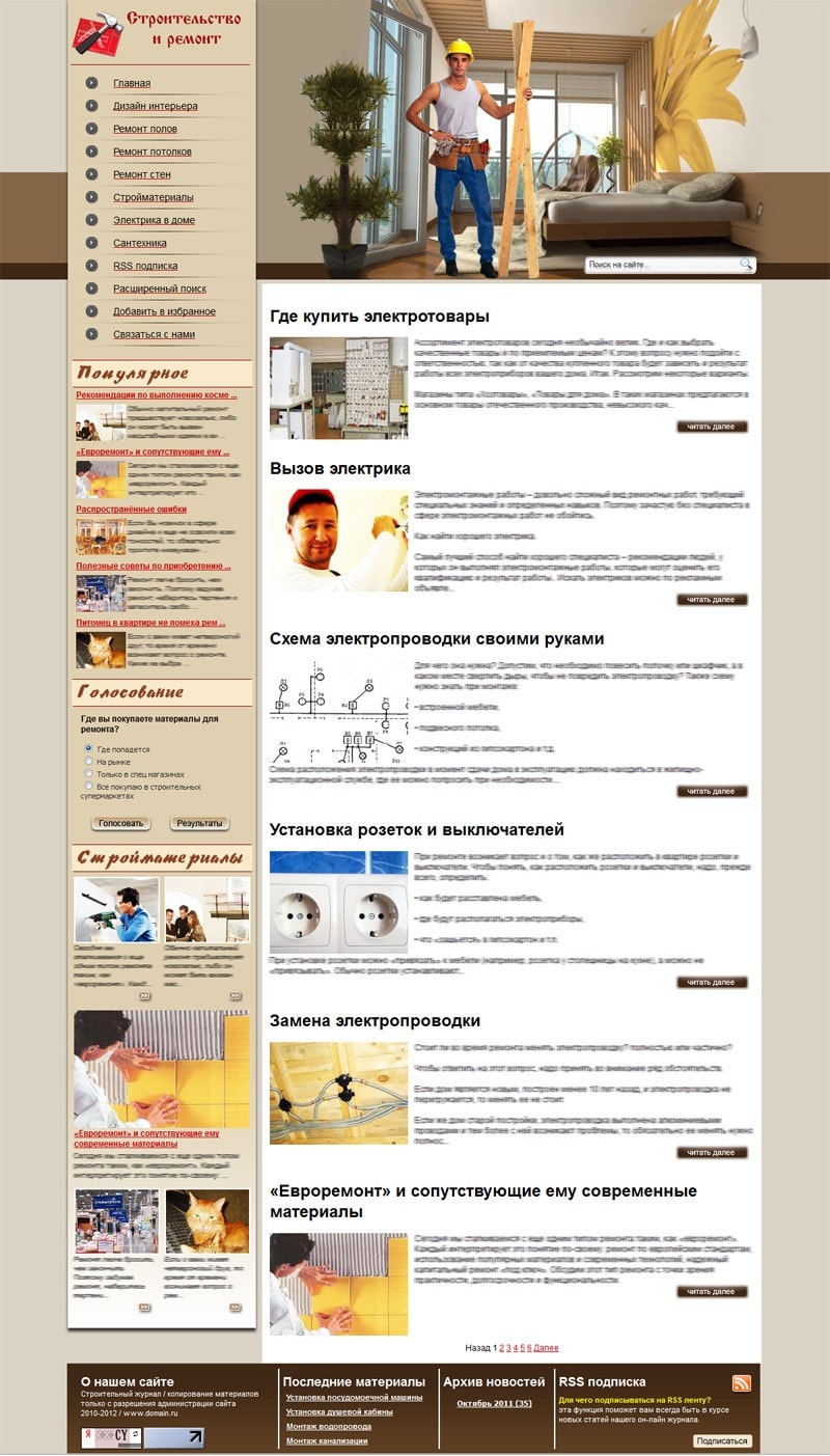 - Блок "Стройматериалы" выводит автоматически последние анонсы статей из раздела стройматериалы.