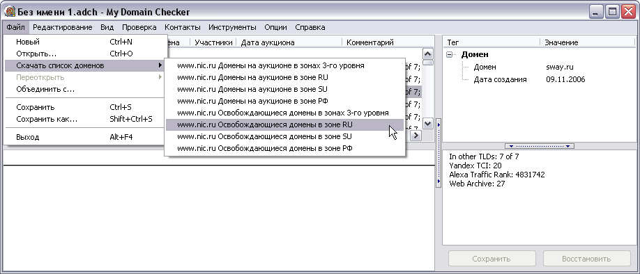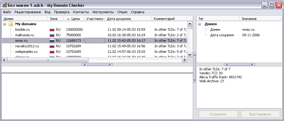 3) Убрано ограничение при сохранения списка - сохраняются все данные. Т.е. даже незарегистрированную программу можно использовать как своеобразный менеджер доменных имен.