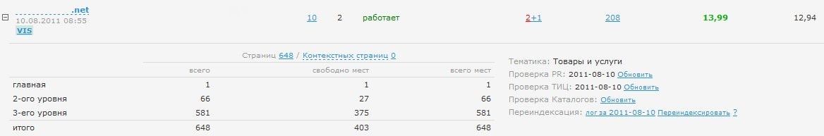 Тиц=10 (затрат на поддержание не требует, качал сам белыми методами)