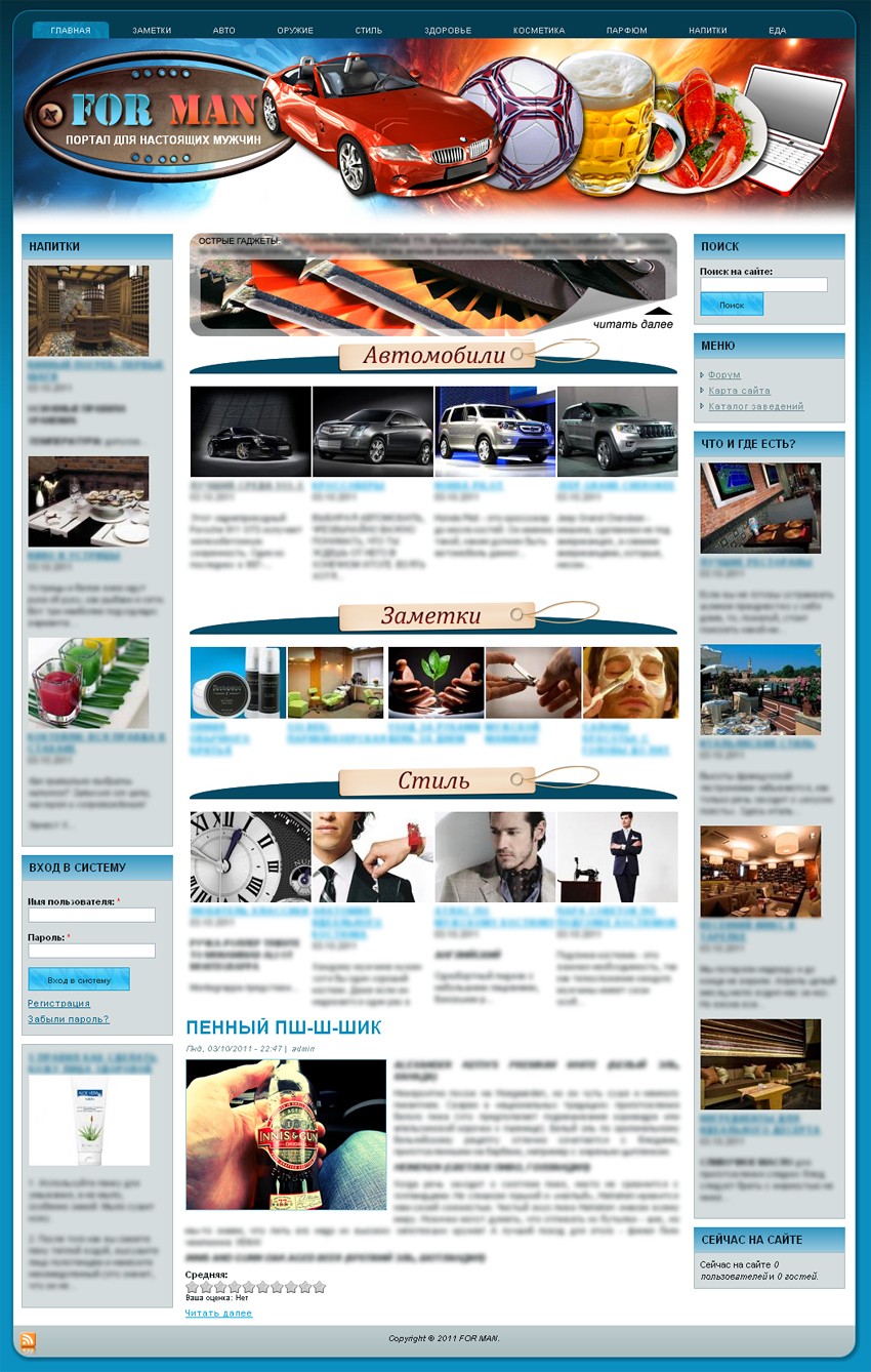 Выставляю на торги симпатичный сайтик-журнал для мужчин. Движок - Drupal 6.0.
