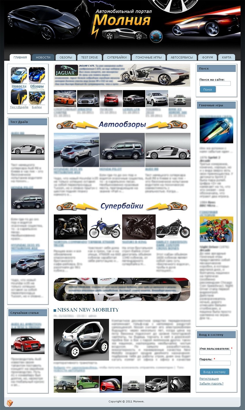 Выставляю на торги симпатичный сайтик "Молния" авто тематики. На сайте расположены новости автомобильного мира, обзоры автомобилей, тест-драйвы, обзоры байков и даже парочка статей на тему компьютерных гонок:) Движок - Drupal 6.0.