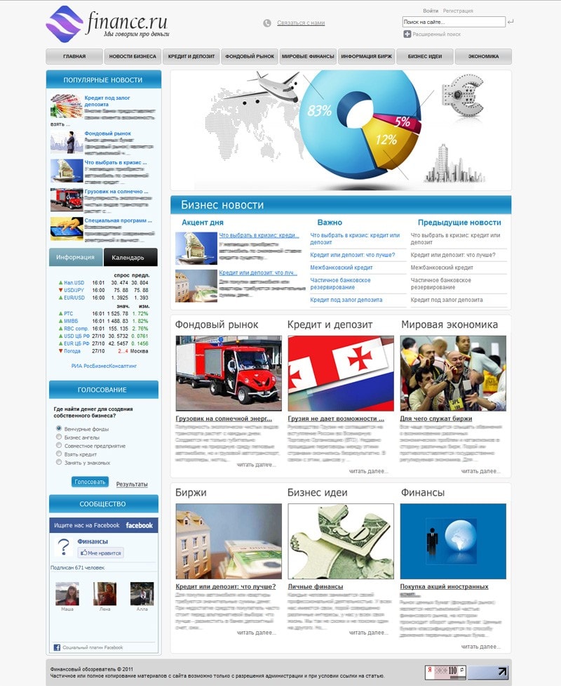 - Блок "Финансы" выводит автоматически анонсы последних статей из раздела финансы.