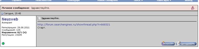 Получил старт в личке от пользователя Neusweb