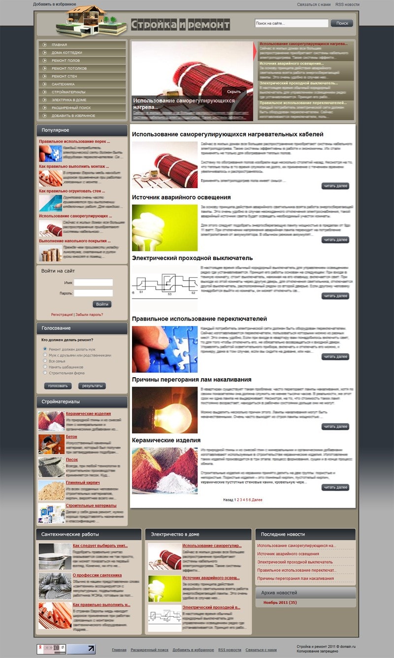 - Блок "Стройматериалы" выводит автоматически последние анонсы статей из раздела стройматериалы.