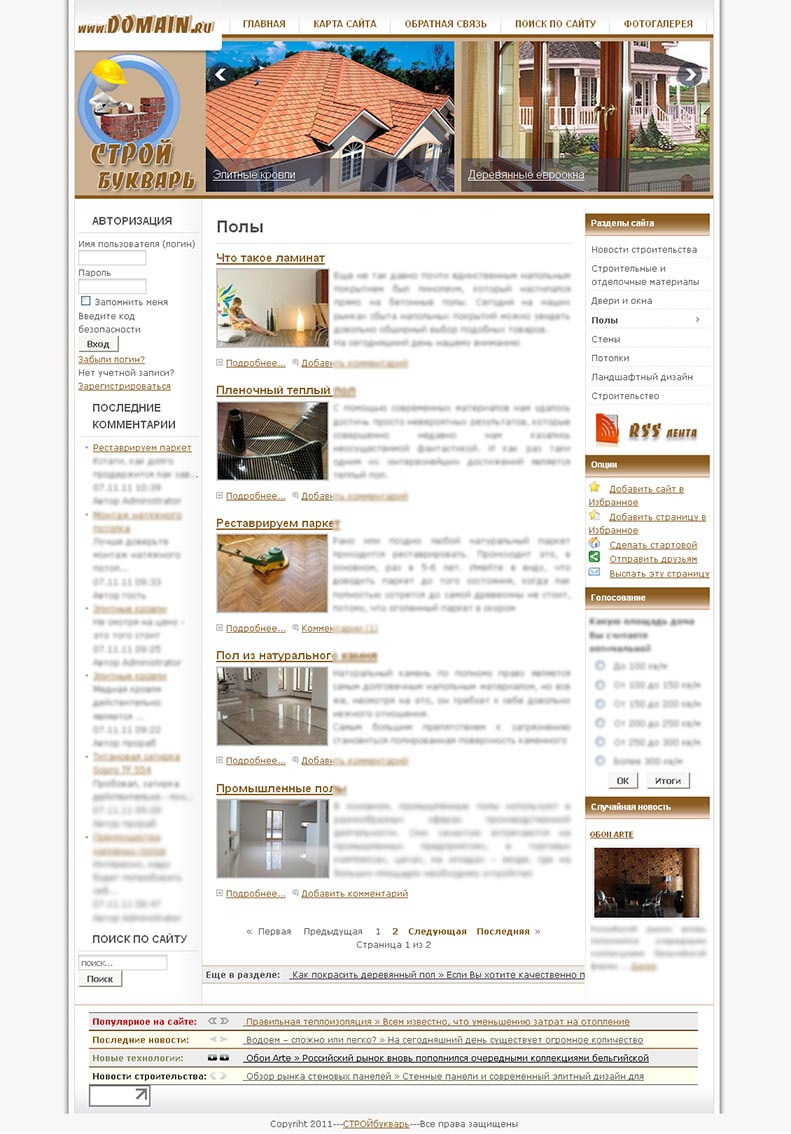 Всего 59 статей, разбитых на категории, к каждой подобрана тематическая картинка( stroyka.jpg ) увеличение по клику. Каждая картинка имеет заголовок.