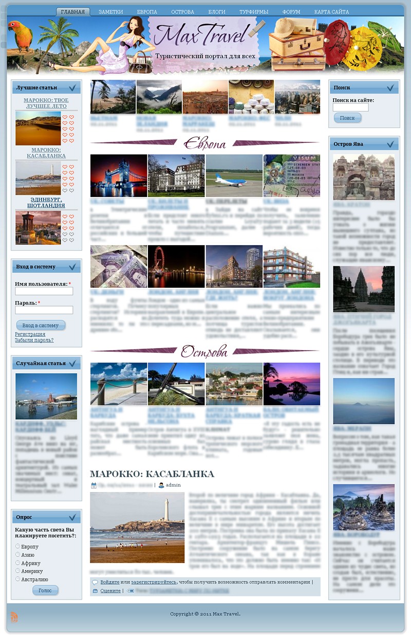 Выставляю на торги симпатичный сайтик "Max Travel" туристической тематики. Движок - Drupal 6.0.