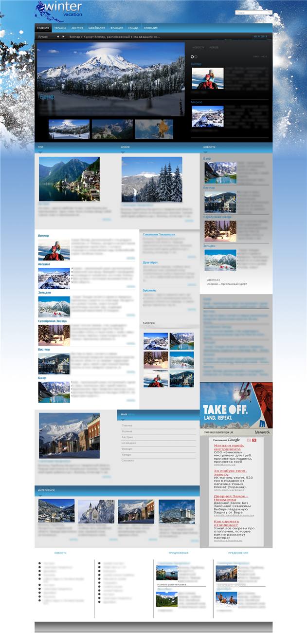 Сайт посвящен зимнему отдыху (горнолыжным курортам мира)