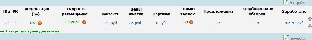 Опубликован 8 обзоров, 4 оплачены, 4 ожидают индексацию. И 15 необработанных заявок.