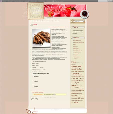 Сайт рассказывает том, что мы едим - овощи и фрукты, готовые блюда и приправы.