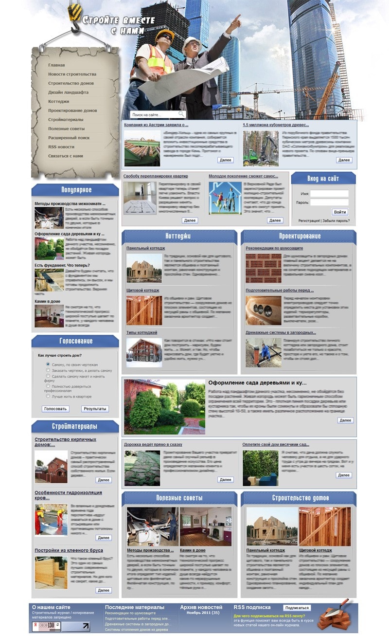 - Блок "Строительство домов" выводит автоматически анонсы последних статей из раздела строительство домов.