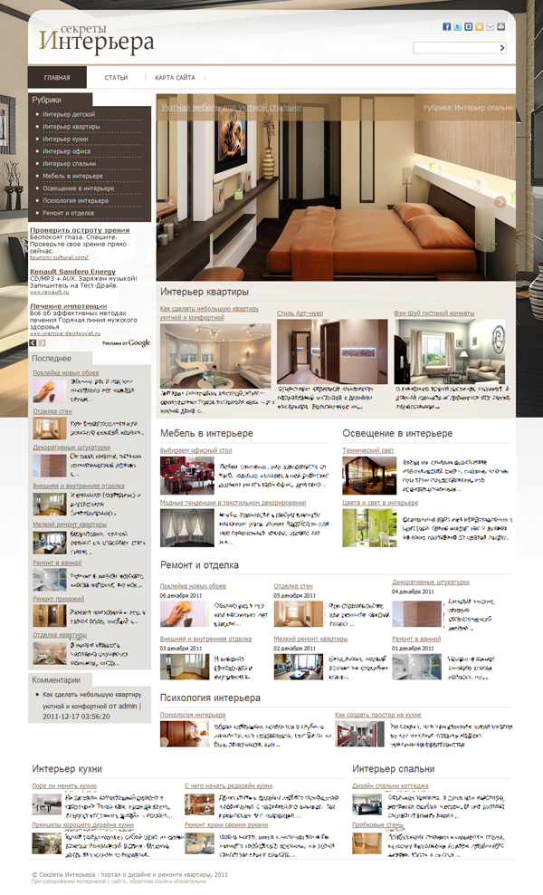 - предусмотрен вывод рекламных объявлений Google AdSense и баннера в шапке