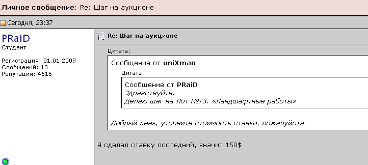Получил ставку 150 вмз от пользователя PRaiD