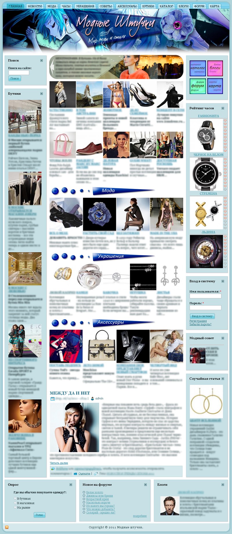Выставляю на торги симпатичный женский сайт "Модные штучки" посвященный моде и стилю. Сайт без домена. Движок - Drupal 6.0.