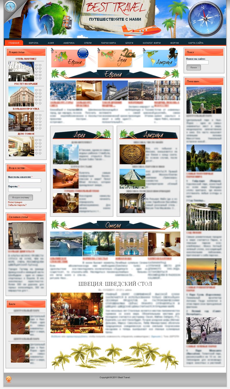 Выставляю на торги симпатичный сайтик "Best Travel" туристической тематики. Движок - Drupal 6.0.