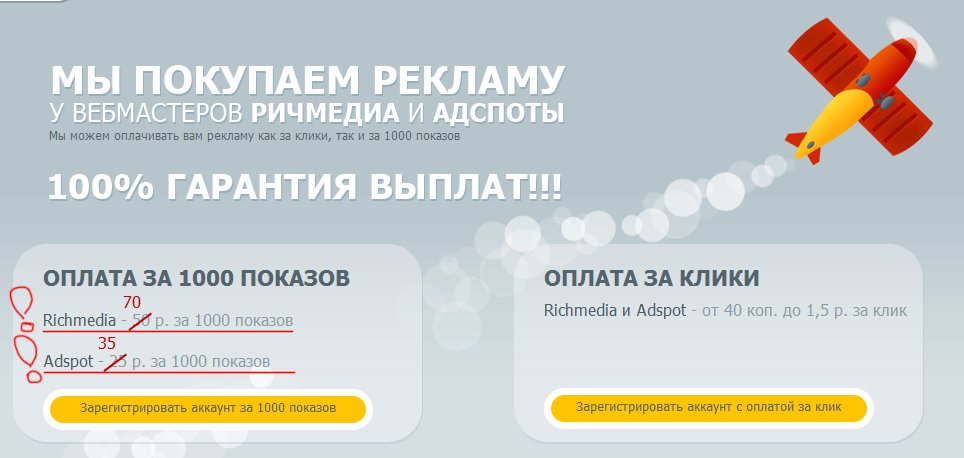 Так же партнерская программа порадовала нас и ценой на рекламу Adspot.