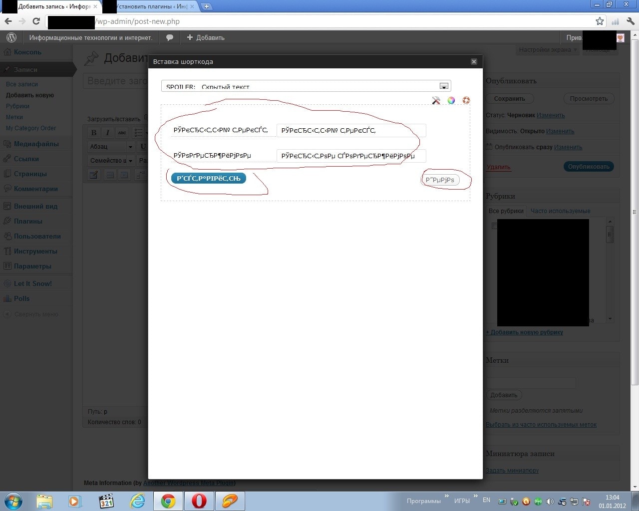 я де вроде ниче не менял на днях только поставил движок и сайт сколотил. надо кудато в файле темы вставить эту строчку? у меня только на странице плагинов когда нажимаю ПОДРОБНОСТИ и когда пишу новую статью в оции дополнительных функций плагина такая шняга :(