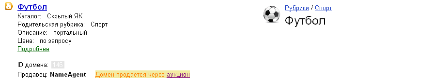 В поиске по Яндекс.Каталогу выводит Рубрика: Футбол