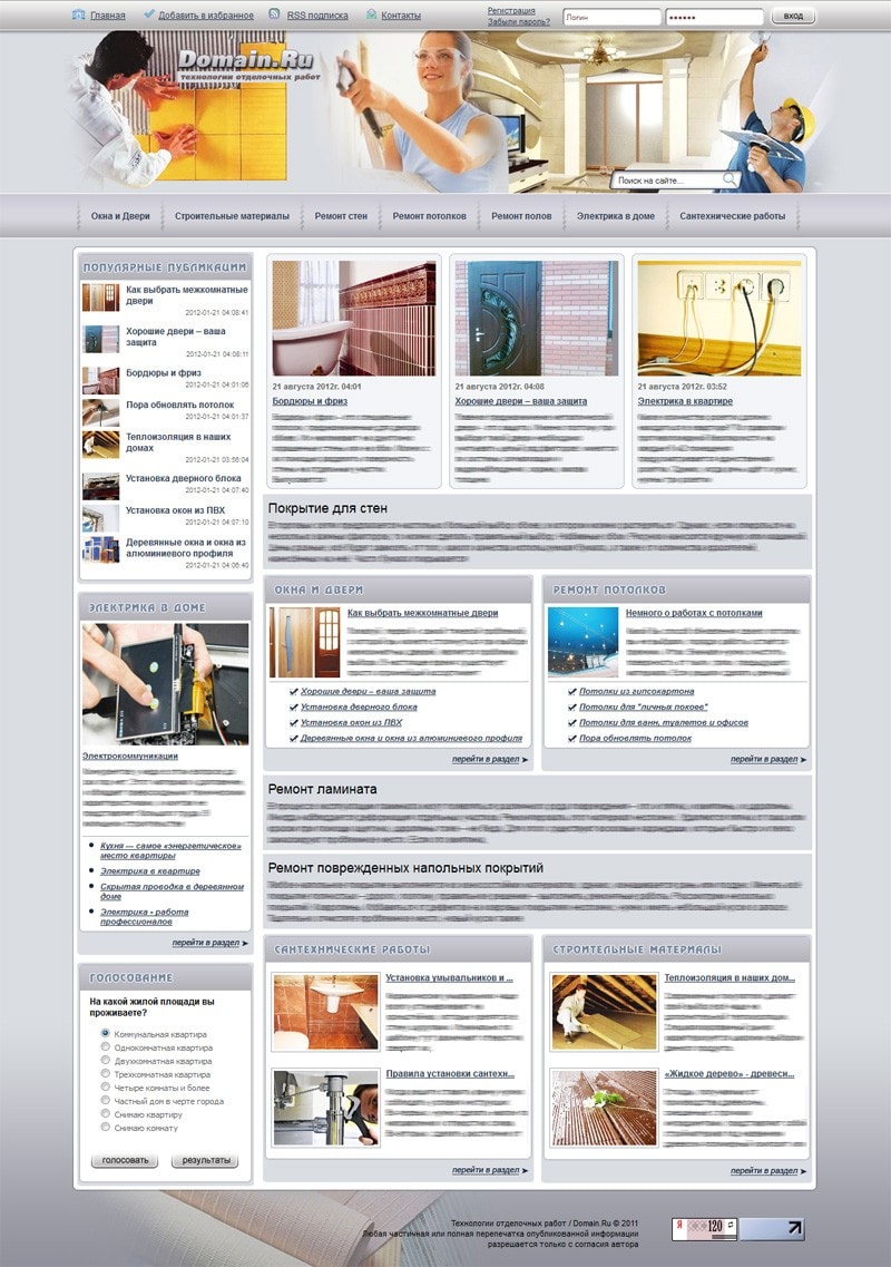 - Блок "Окна и двери" выводит автоматически анонсы последних статей из раздела окна и двери.