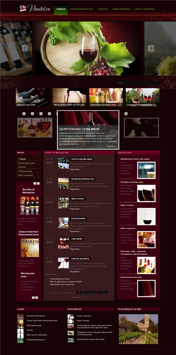 Все необходимые модули для полноценной работы сайта установлены: (слайдер (выводится 5 красивых фото), второй слайдер (выводятся фото с названием и кратким описанием статьи), различные модули для выведения новостей, которые можно настраивать на Ваше усмотрение).
