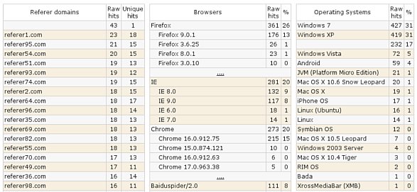5) Добавлена не менее красивая статистика по ОС, доменам рефера, а также по языкам.