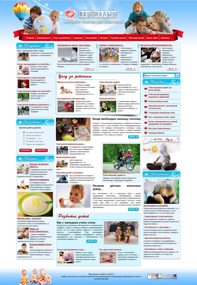 - Блок "Уход за ребенком" выводит автоматически последние анонсы статей из раздела уход за ребенком.