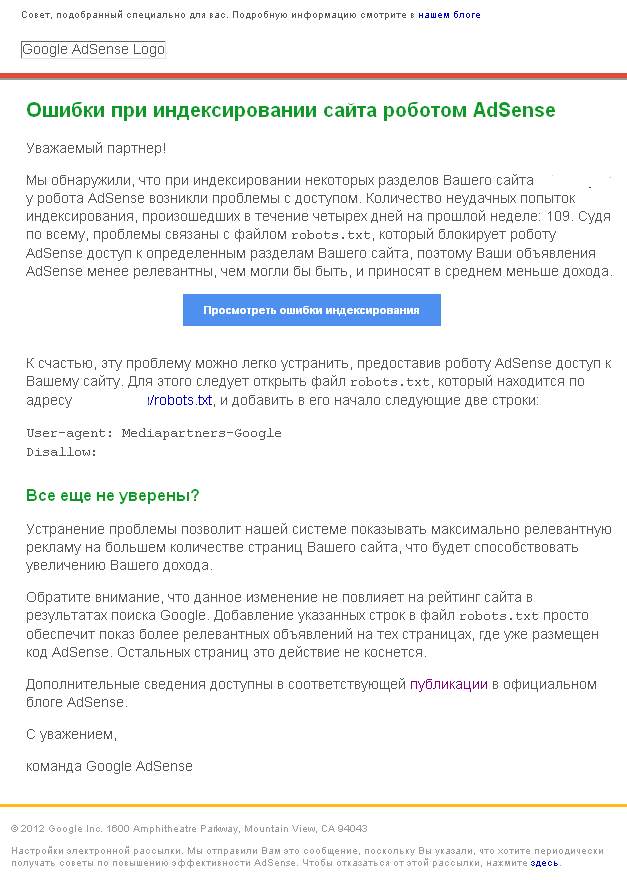Добрый день, мне совет пришёл на почту, дописать пару строчек в robots.txt чтоб на сайте более релевантные объявления показывались. Этот совет только для одного сайта пришёл, но у меня их на аккауте намного больше, а вопрос такой, это правило только для одного сайта будет работать которое в письме указано или на всех сайтах, robots.txt которых я исправлю и на которых адсенс стоит?