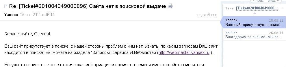 В Яндексе задавала вопрос, почему в выдаче нет.