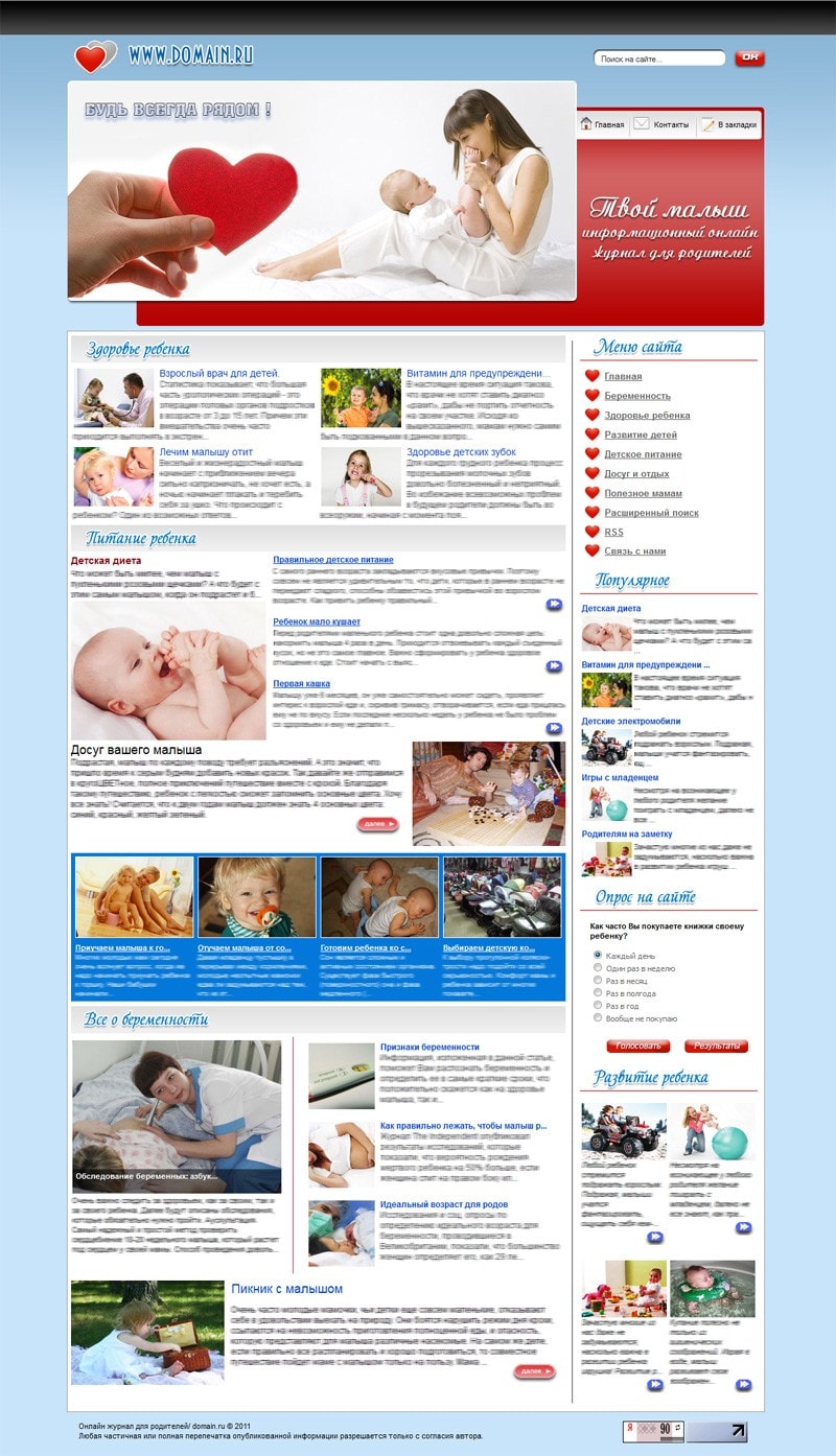 - Блок "Здоровье ребенка" выводит автоматически последние анонсы статей из раздела здоровье ребенка.