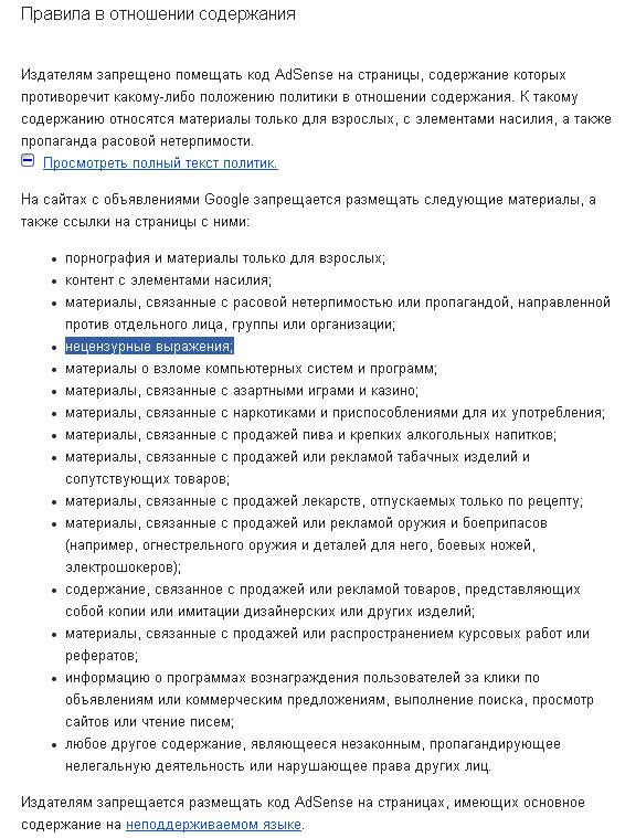 Теперь правила adsence, запрещено показывать обьявления, на страницах, с нецензурные выражениями!