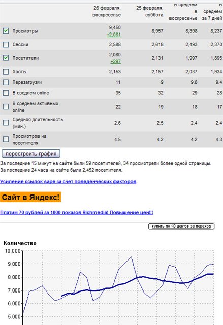 Посещаемость: 2000 уников. На 1 посетителя ~4.5 просмотра.